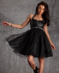 Faux δερμάτινο μπούστο φόρεμα με φλεγόμενη φούστα από τούλι. Το φόρεμα έχει ελαστική μέση και ελαστικούς ιμάντες ώμου που είναι συνυφασμένα στο πίσω μέρος.