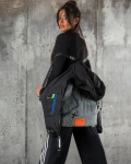 - Деним на гърба със захабени акценти, копчета у неонова нашивка