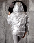 Σακάκι Shushlyakov με ρυθμιζόμενες ελαστικές συνδέσεις στα μανίκια και στο κάτω μέρος. Το σακάκι είναι διακοσμημένο με φυσικό πουπουλένιο στο τελείωμα της κουκούλας, το οποίο μπορεί να αφαιρεθεί. Σχέδιο διπλής όψης σε μαύρο και ασημί χρώμα με πλαϊνές τσέπες.